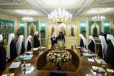 "В условиях невозможности созыва Архиерейского Собора вся полнота власти в Русской Православной Церкви сосредоточилась в руках Святейшего Патриарха и Священного Синода".