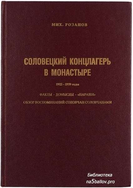 Розанов Михаил. Соловецкий концлагерь в монастыре. 1922-1939. Факты - домыслы - параши. Обзор воспоминаний соловчан соловчанами. В 2 кн. и 8 ч. - США: Издание автора (США), 1979. Кн. 1 (ч. 1-3).