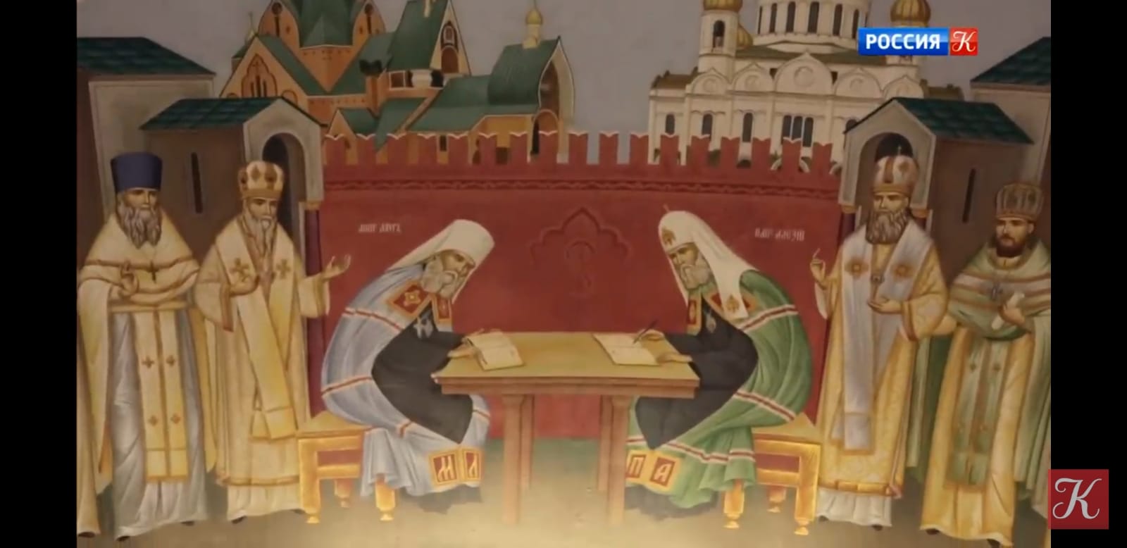 В настенной росписи основной части этого храма-памятника — от притвора до главного купола — изображается весь 1000-летний путь Русской Православной Церкви: от Крещения Руси до подписания в Москве Акта о каноническом общении, которым завершится этот великий образ...»