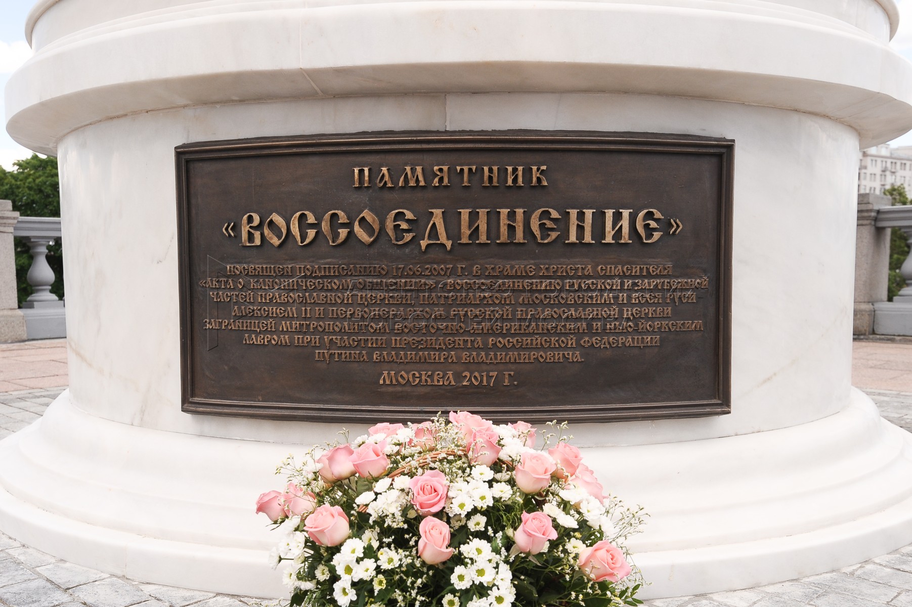 А это удачно мрачный монумент в честь "воссоединения" у Храма Христа Спасителя в Москве: