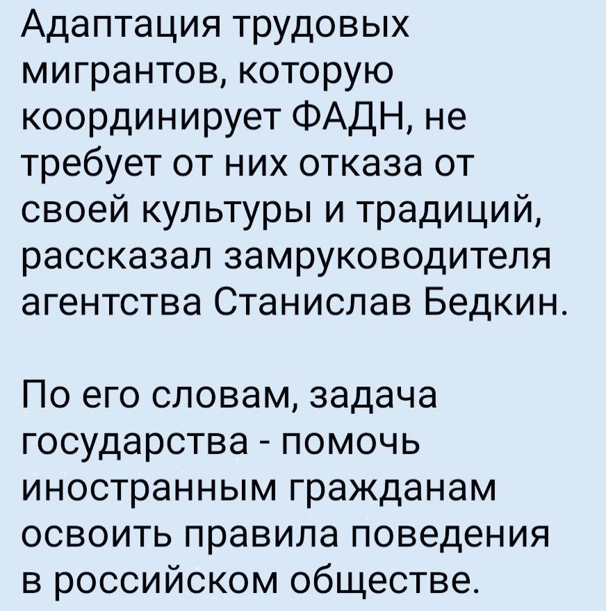 Вся адаптация должна сводиться к максимально жёсткому ограничению маршрутов мигрантов на территории России.