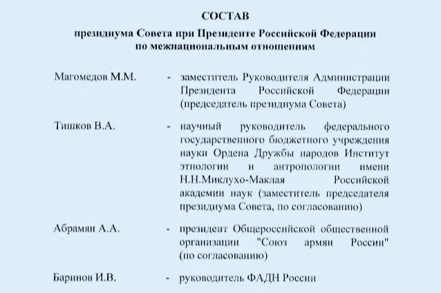 Утверждён новый старый состав президиума Совета при президенте по межнациональным отношениям.