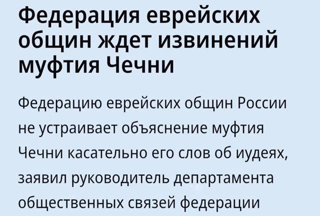 А сам "борец за независимую Ичкерию" Кадыров как-то решил процитировать у себя послание президента, но из отрывка про "вековую сплочённость" ловко вырезал упоминание иудеев, которые перечислялись в одном ряду с представителями других религий.