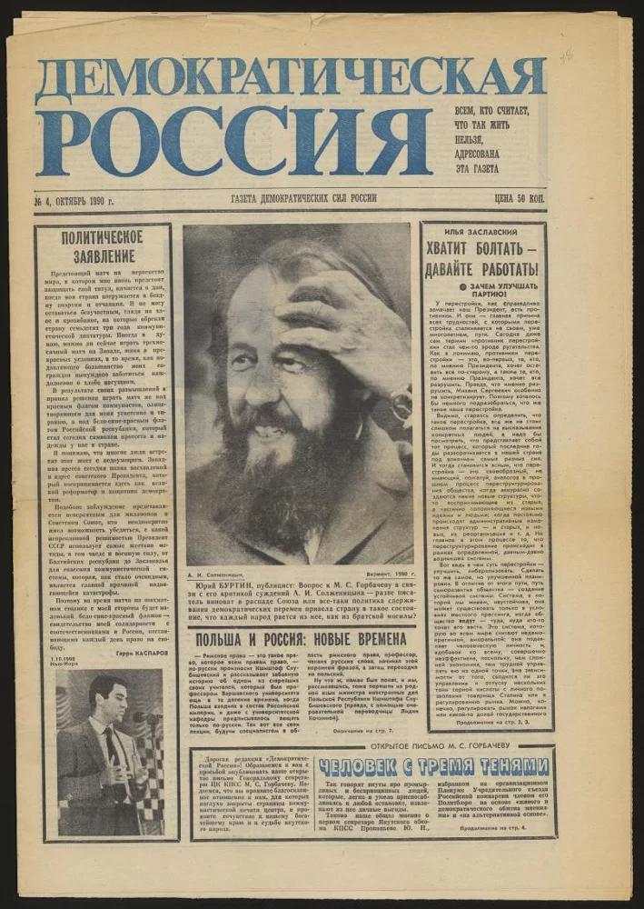 Источник: Газета "Демократическая Россия". Москва, № 4, 1990 г.