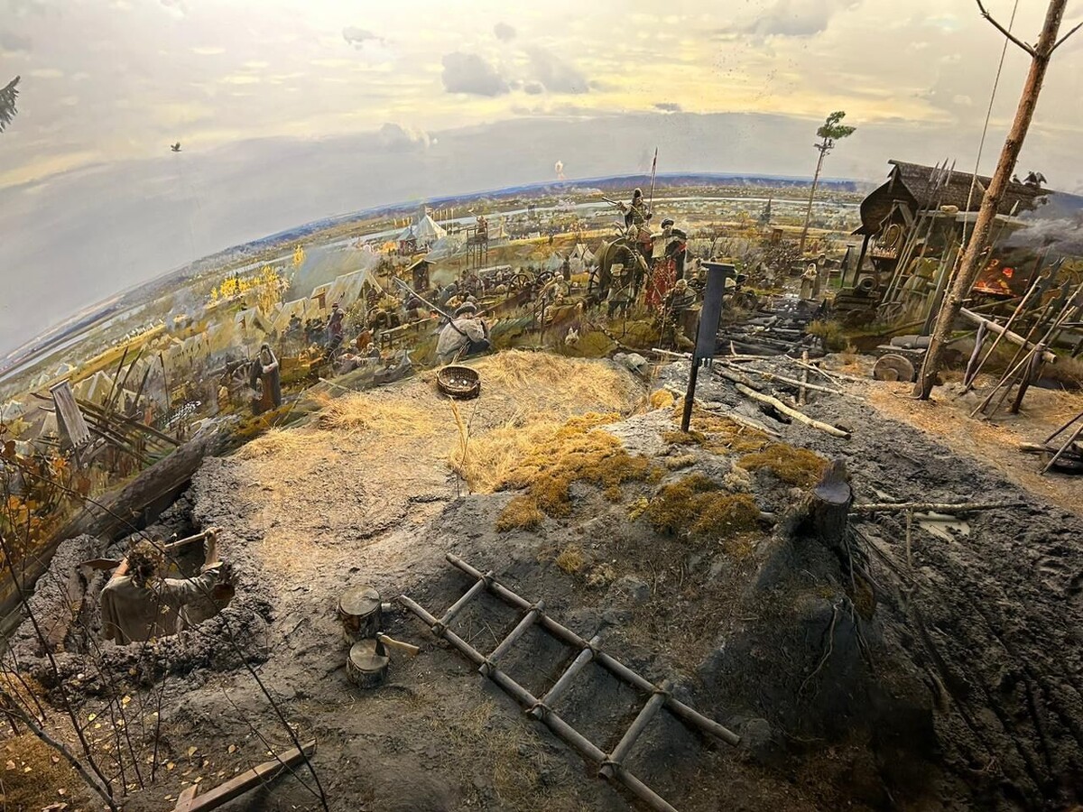 Художник Павел Рыженко, создатель диорамы, добился поразительного эффекта присутствия — зритель буквально оказывается на берегу реки под гул пушек и звон оружия. В залах музея выставлены подлинные археологические находки, найденные именно на этих берегах: фрагменты глиняной посуды, железные стрелы, нательные крестики и монеты XV века.