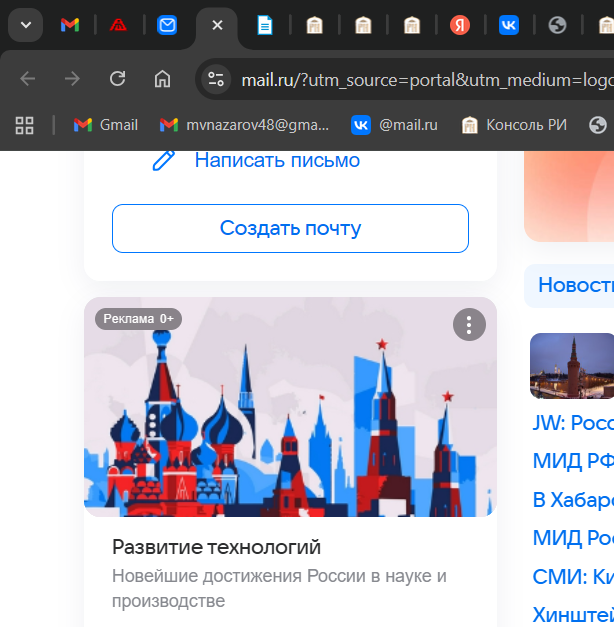 Mail.ru — крупнейший российский интернет-портал, занимает 5-е место в рейтинге мировых почтовых сервисов по дневной аудитории. Принадлежащий технологической компании VK.