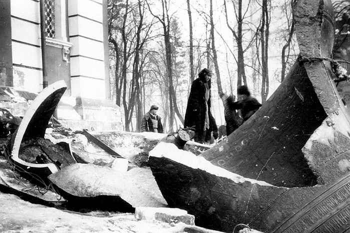Выдержки из дневников писателя Михаила Михайловича Пришвина и его фотографии об уничтожении большевиками древнейших колоколов Троице-Сергиевой Лавры зимой 1929–1930 гг.
